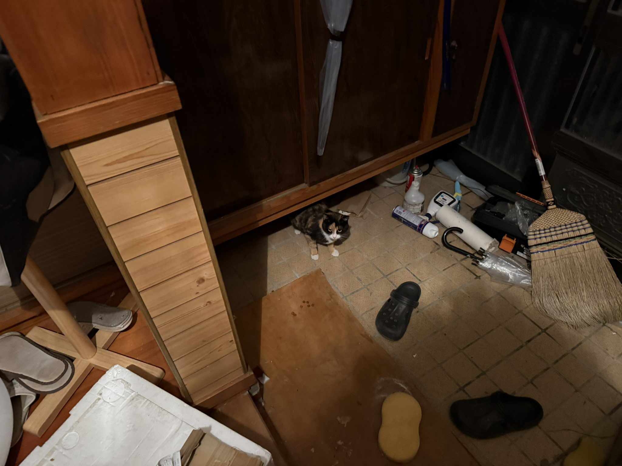 それにしても家の知らないところがまだまだあるんだなと思った。家の中で無限に現れるカマドウマはこの隙間から入ってきていたのかもしれないし、小動物の侵入経路にもなり得るので気づけてよかった。猫探しの最中に引き出しの中から残置物の掛け軸が出てきたりもした。家を買って1年以上たつがまだ開けていない引き出しがあったことに驚いた。